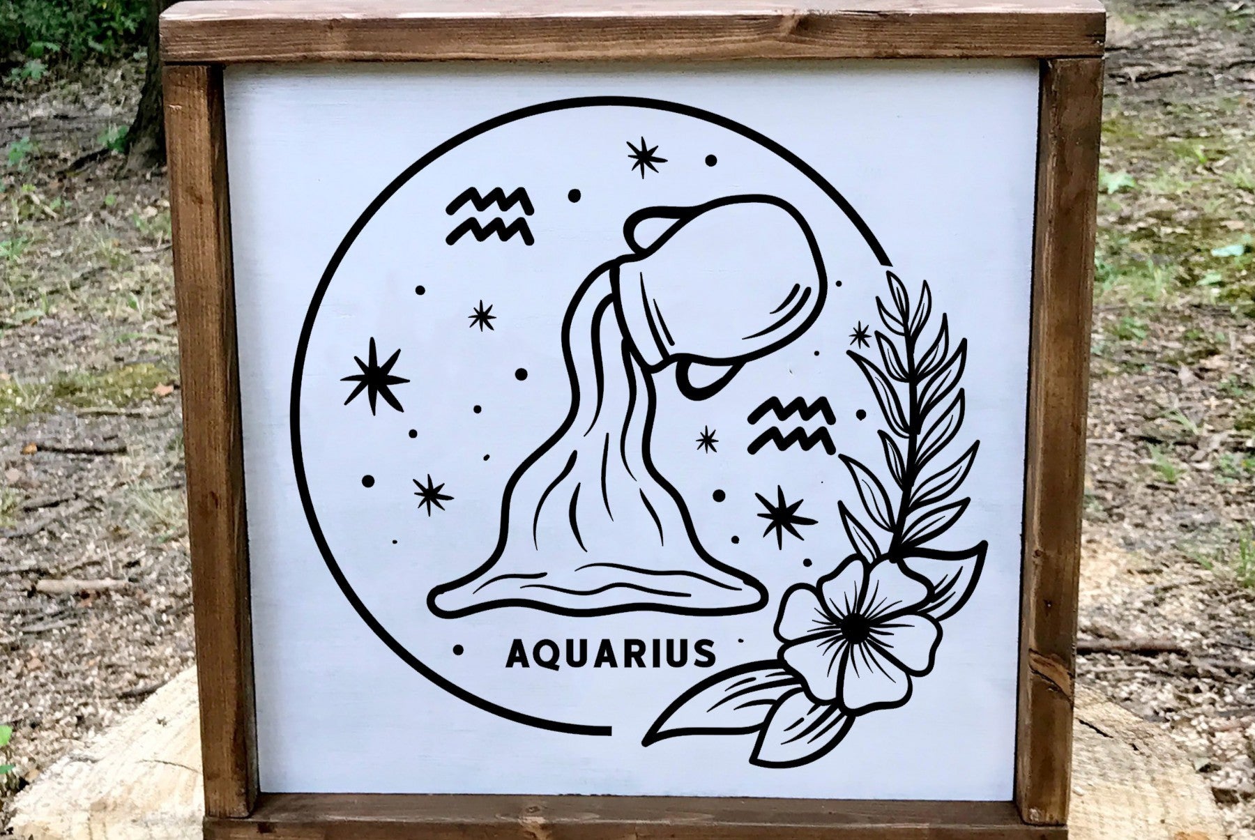 Aquarius Zodiac Wood Sign, 8x8 Painted Astrology Wall Decor, Water Bearer Birthday Gift, Minimalist Celestial Farmhouse Sign