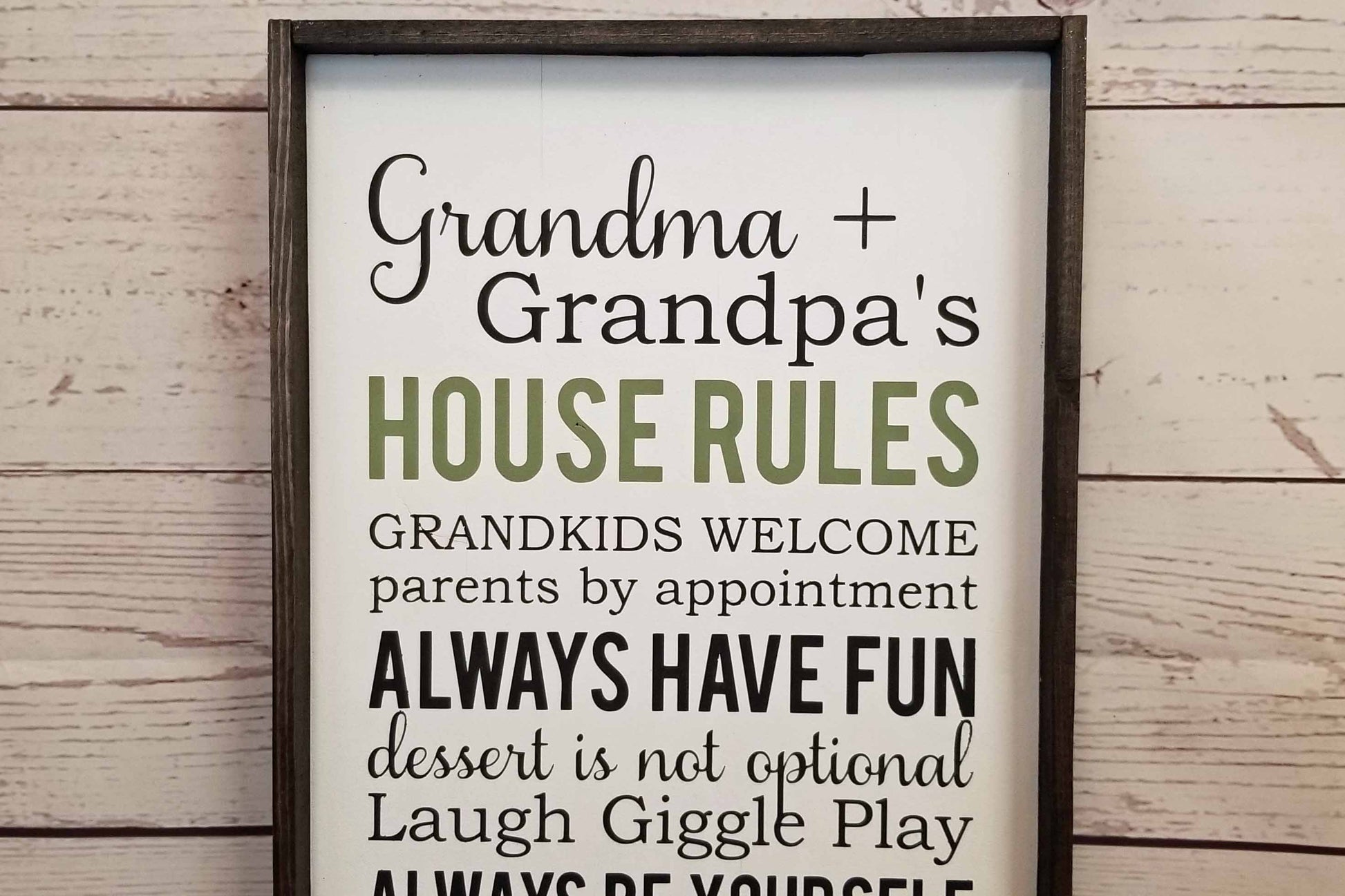 The kids always love going to the grandparents house. Why? Because the rules are way more fun! Endless hugs and kisses and cookies. Perfect sign to give to the new proud grandparents.
