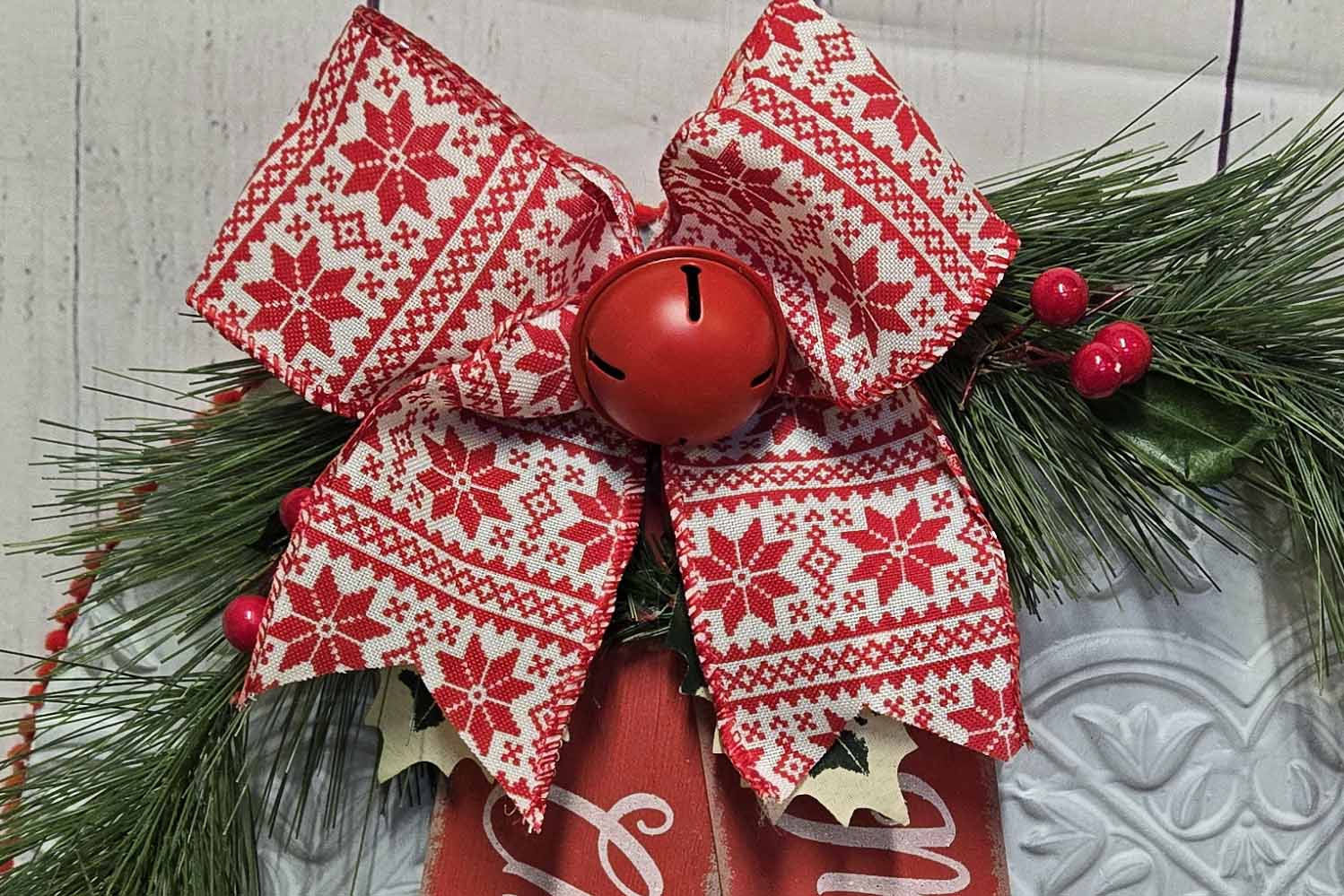 Welcome guests this holiday season with this charming 12-inch "Happy Holidays" or "Merry Christmas" door hanger! Crafted to resemble vintage pressed tin, this lightweight round sign features an elegant pattern with a festive red trim and a full, traditional Christmas bow with holly accents. It is perfect for adding a touch of farmhouse, rustic winter decor to your home.