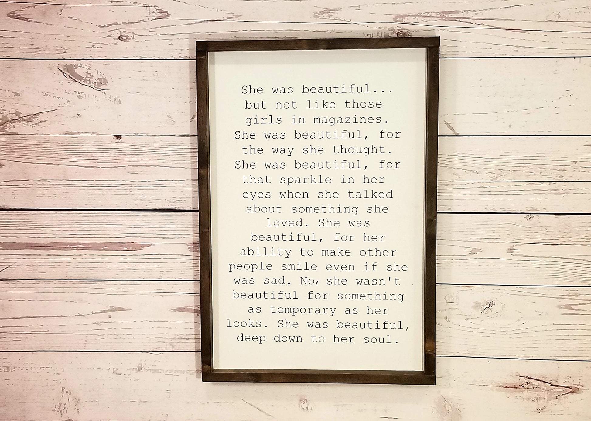She Was Beautiful - Dorm Room Decorating, Empowering Women, Self Esteem Sign
